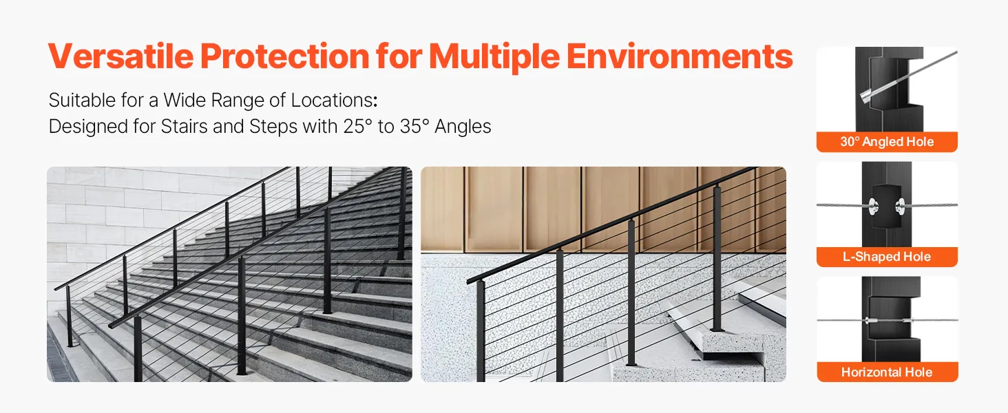 Protección para múltiples escenas: Nuestro poste de riel de cable es adecuado para protección tanto en interiores como en exteriores, incluidas terrazas, escaleras, porches, cercas, patios, balcones, jardines, edificios residenciales, oficinas comerciales, hoteles, garajes y más