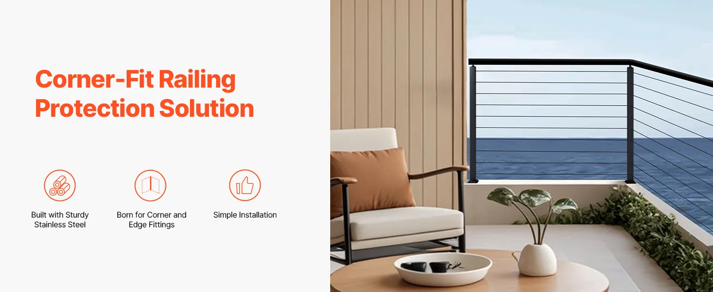 Este kit de barandilla de terraza con orificio tipo L es compatible con esquinas y giros, lo que lo hace ideal para escaleras, patios, pasillos y otras aplicaciones de esquina.