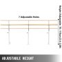 VEVOR Barra de Ballet 3M Barra Ballet Portátil Altura Ajustable 75cm-115cm, Barra Ballet Portátil Blanco, Barra de Ballet Móvil Capacidad hasta 150 kg para Hogar, Escuela, Estudio de Baile y Gimnasio