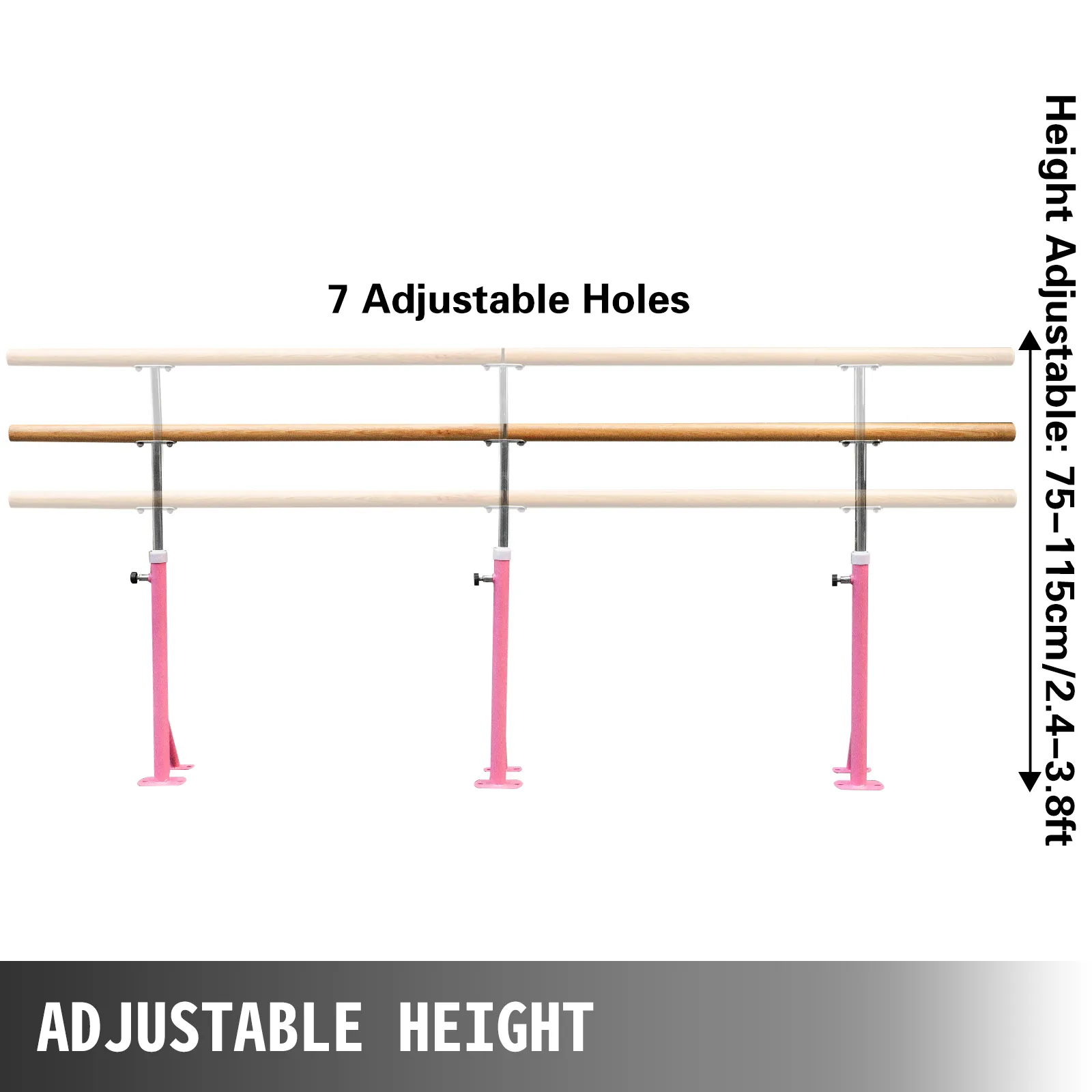 Las alturas de barra ajustables varían de 75 cm / 2,4 pies a 115 cm / 3,8 pies. Ajuste fácilmente la altura de la barra con un simple ajuste de la perilla. Apto para personas de diferente altura.