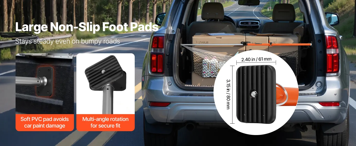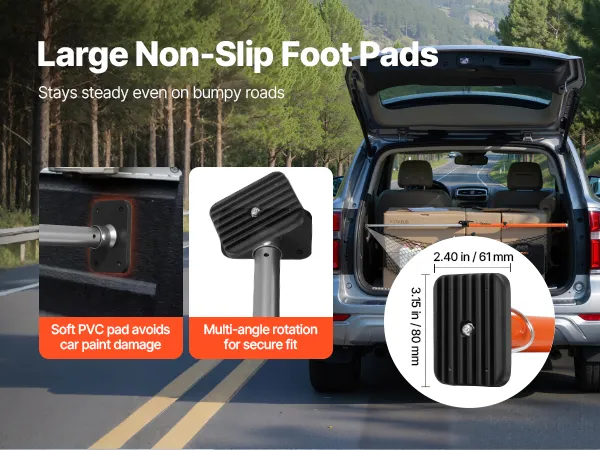 Las almohadillas antideslizantes y ampliadas garantizan un agarre firme incluso en carreteras con baches. Las almohadillas de PVC suave protegen la pintura del vehículo y evitan que la barra de carga se deslice, manteniendo la carga estable y segura.