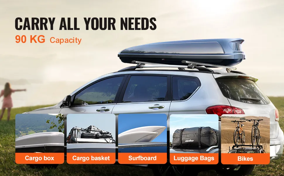 Capacidad de carga de 90 kg: Aumente la capacidad de carga de su vehículo con una capacidad de carga de 90 kg. Ahora, puede transportar sin esfuerzo artículos grandes como portaequipajes, baúles de carga, tablas de surf, bicicletas y esquís, lo que hará que sus viajes sean más placenteros y placenteros