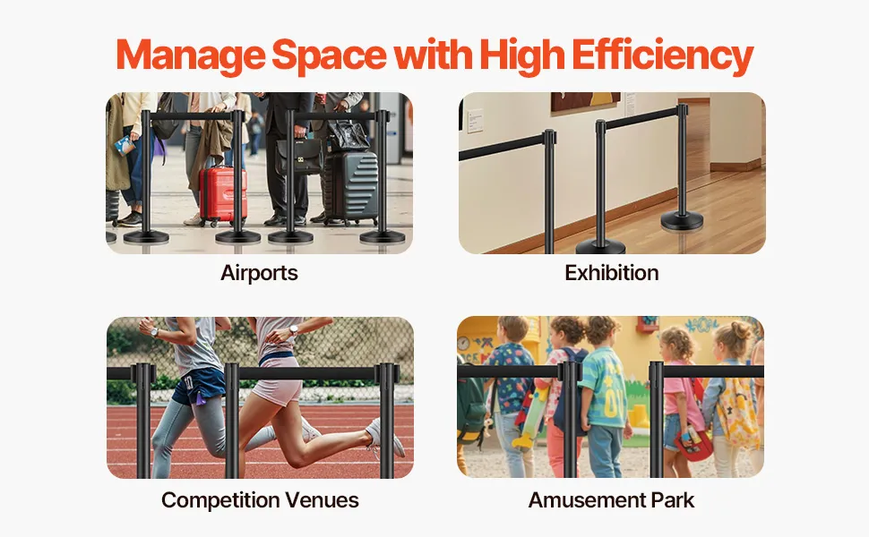 Flexible y conveniente: Como producto portátil y versátil, los postes de control de multitudes son ideales para una amplia variedad de entornos, desde pasillos de supermercados y eventos deportivos hasta reuniones en restaurantes y consultorios médicos. Ya sea que necesite controlar el flujo de multitudes, definir áreas o ajustar el espacio sobre la marcha, nuestro poste proporciona una experiencia de control de espacios de primera calidad