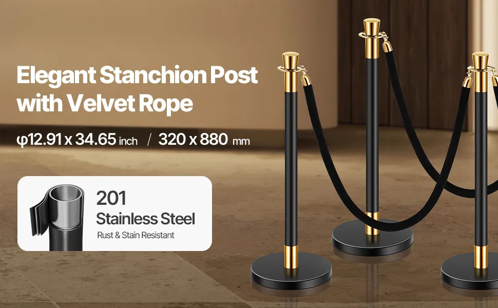 Fabricado con acero inoxidable 201 resistente, nuestro poste de soporte ofrece confiabilidad y durabilidad. Con un diseño elegante y minimalista, agrega un toque de sofisticación a cualquier evento, desde ceremonias de alfombra roja hasta bailes.