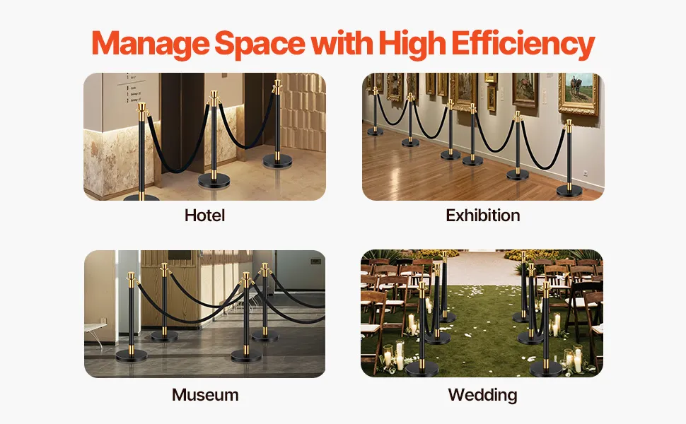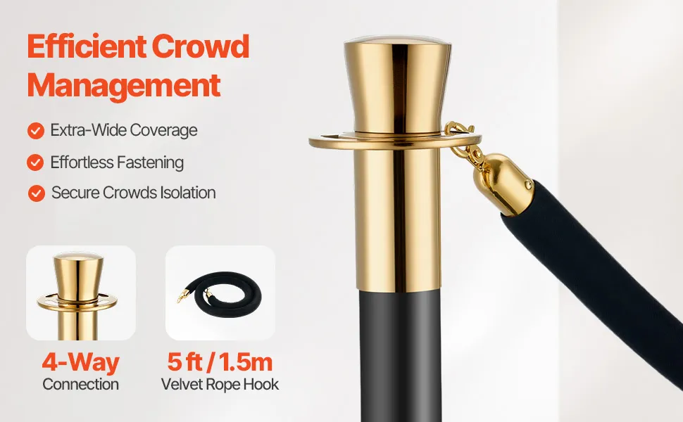 Configuración flexible: Cada poste de soporte viene con una cuerda de terciopelo de 1,5 m y conectores de cuatro vías, lo que facilita la instalación y el ajuste del espacio según sus necesidades. Es ideal para cualquier ocasión, sin importar dónde o cómo necesite administrar su espacio