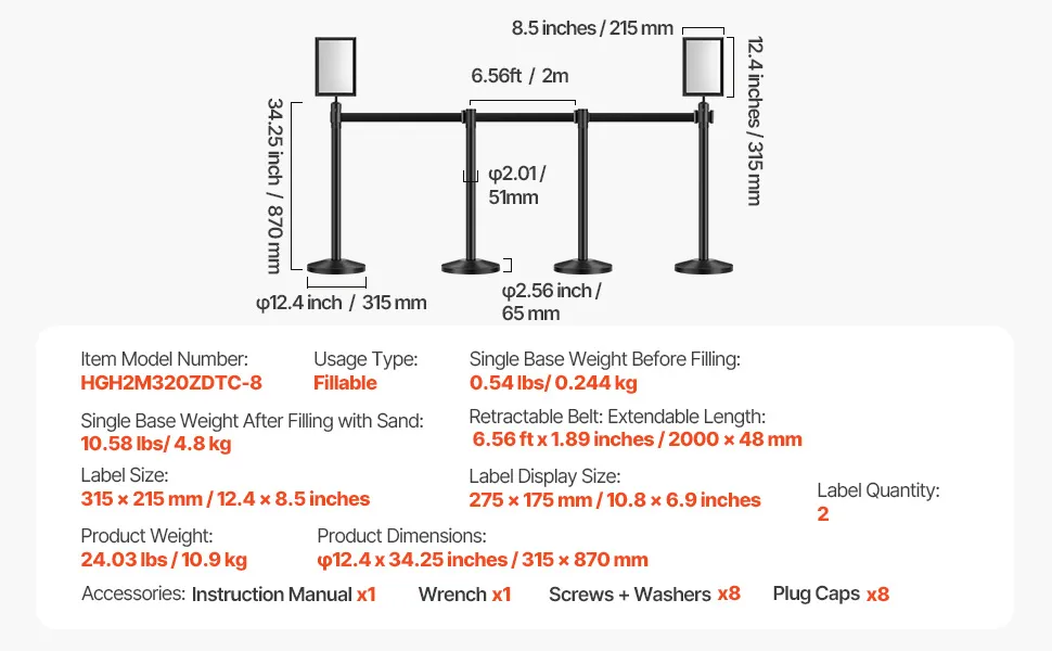 Base estable: Con un diseño de base expandida con un fondo antideslizante y rellenable, nuestro sistema de control de multitudes es fácil de estabilizar; solo llénelo con arena para mejorar su estabilidad. Con un peso de 4,8 kg cuando está lleno, proporciona un soporte fuerte, capaz de soportar la luz solar directa o impactos inesperados