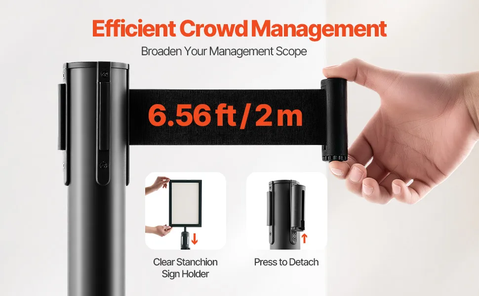 Cada barrera de control de multitudes viene con un cinturón retráctil, lo que la hace muy versátil y fácil de ajustar. Puede extender o acortar fácilmente el cinturón para adaptarse a diferentes espacios y ocasiones, lo que le ofrece soluciones flexibles de control de multitudes.