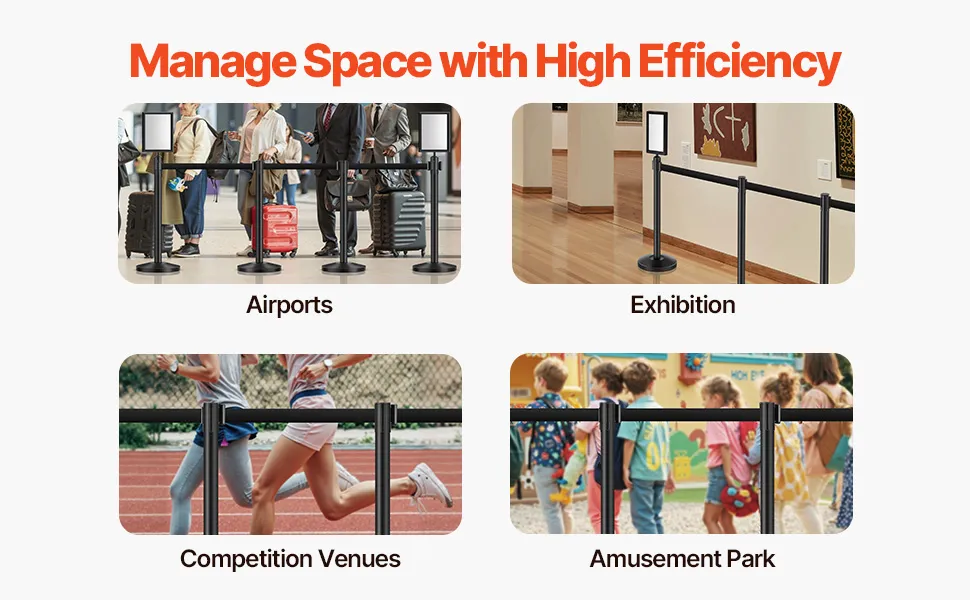 Flexible y conveniente: Como producto portátil y versátil, los postes de control de multitudes son ideales para una amplia variedad de entornos, desde pasillos de supermercados y eventos deportivos hasta reuniones en restaurantes y consultorios médicos. Ya sea que necesite controlar el flujo de multitudes, definir áreas o ajustar el espacio sobre la marcha, nuestro poste proporciona una experiencia de control de espacios de primera calidad