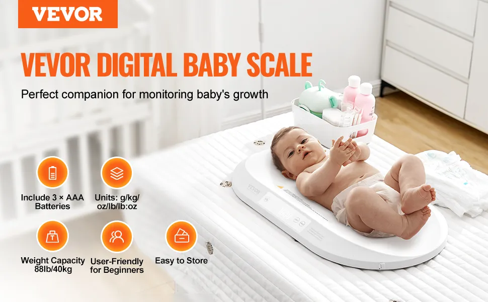 Controle el peso y la altura de su bebé con la báscula para bebés de VEVOR, que cuenta con la función inteligente Bluetooth 4.0. Ya sea que esté controlando el peso o la altura, esta báscula para bebés le garantiza que se mantendrá informado sobre el desarrollo del bebé.