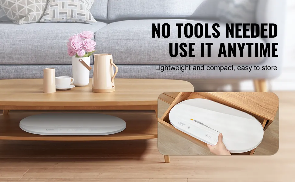 Diseñada para una instalación y desmontaje sencillos y sin herramientas, esta báscula es compacta y cabe sin esfuerzo en armarios, cajones u otros espacios reducidos. Su diseño que ahorra espacio garantiza que no ocupe mucho espacio cuando no se utiliza.