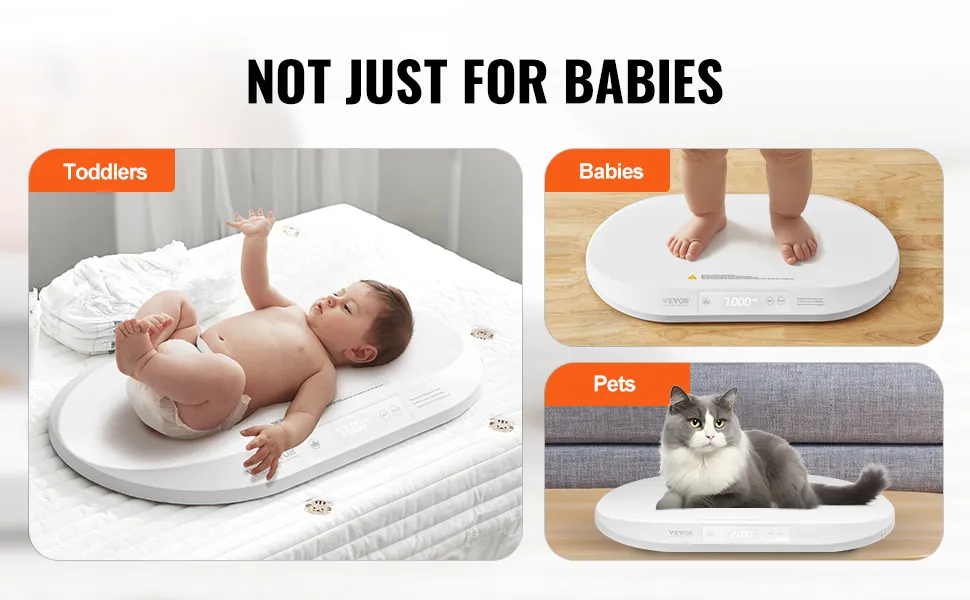 Disfrute de una medición precisa y estable de 0,1 a 88 libras. Esta báscula digital multifuncional con cinta métrica de altura es perfecta para bebés, niños y mascotas. Ya sea que tenga una mascota o sea padre, es un complemento práctico y útil para su hogar.
