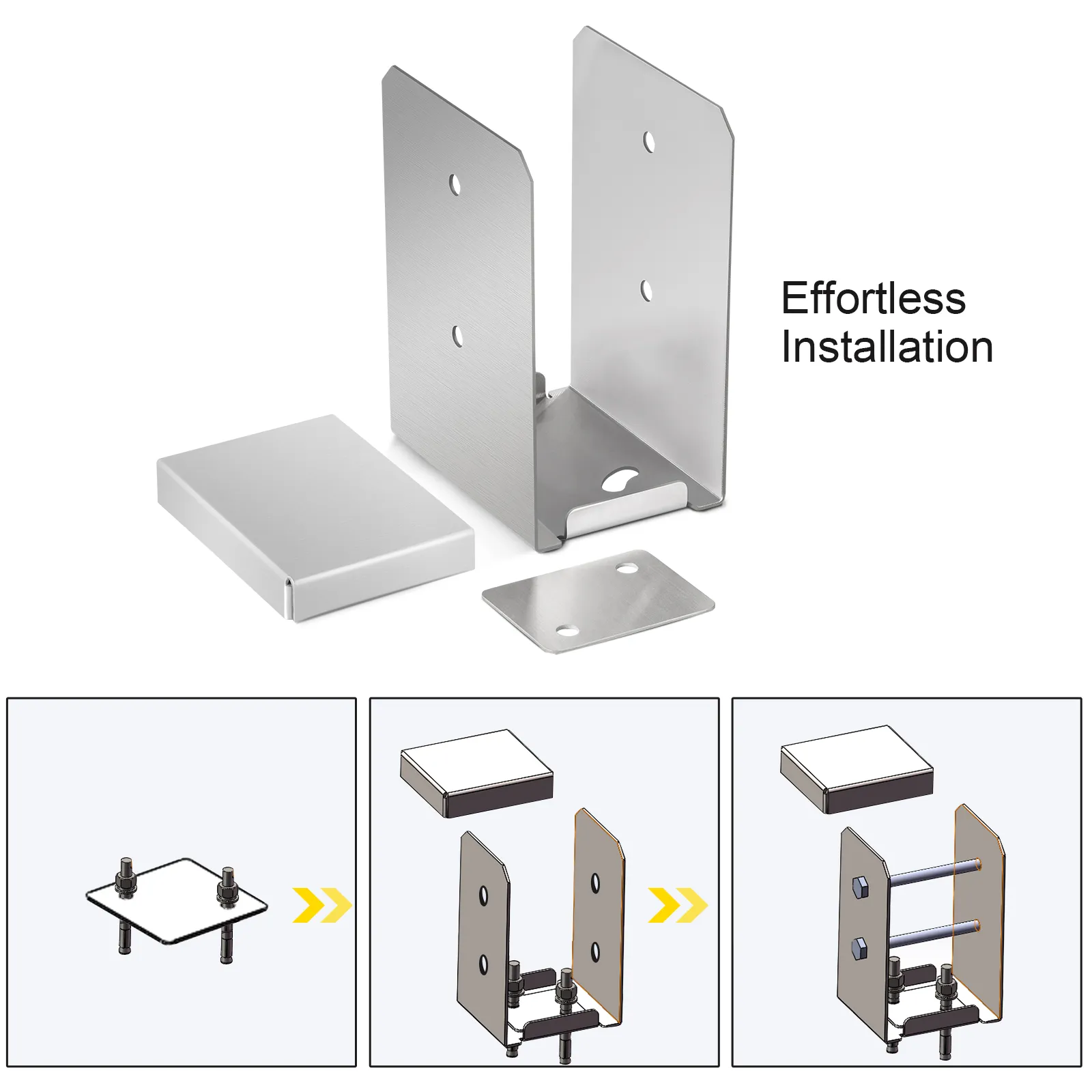 Nuestros soportes para postes, hechos de acero de alta dureza, cuentan con barniz de fibra, que puede proteger los postes del óxido. Por lo tanto, pueden durar mucho tiempo en un entorno hostil. Su rendimiento superior determina que puede usarlos en múltiples condiciones, incluidos soportes de cubierta, barandas de porche, pasamanos de escaleras, postes de buzones, etc.