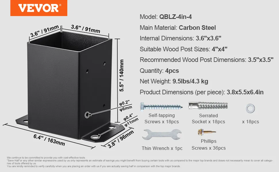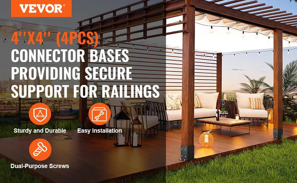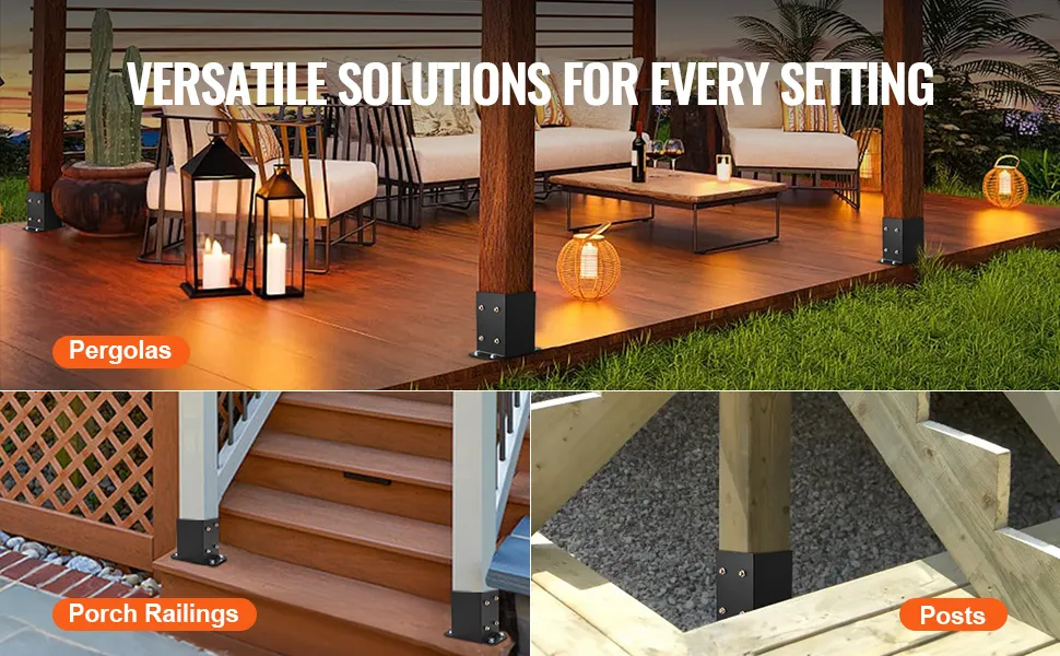 Todos los soportes de base para postes VEVOR 4x4 están hechos para brindar un soporte estable. Cada base de poste mide 3,8 x 5,5 x 6,4 pulgadas, lo que proporciona un anclaje confiable. Son ideales para columnas de 3,5 x 3,5 pulgadas, lo que brinda un ajuste seguro sin tambalearse. Estas bases son perfectas para pérgolas y pasamanos, y ofrecen una base sólida para sus proyectos. Su diseño de estructura envolvente garantiza estabilidad y soporte, lo que las hace confiables para diversas aplicaciones.