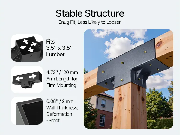 A4: El soporte de 4 x 4 pulgadas(dimensiones interiores: 3,62 x 3,62 pulgadas) es compatible con madera de 3,5 pulgadas x 3,5 pulgadas. El soporte de 6 x 6 pulgadas(dimensiones interiores: 5,59 x 5,59 pulgadas) es compatible con madera de 5,5 x 5,5 pulgadas.