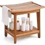 Este taburete de ducha para baño se adapta perfectamente a entradas, jardines, balcones, terrazas y salas de estar. Complementa sin esfuerzo varios estilos de decoración. Puede usarlo como un asiento multifuncional y un estante de almacenamiento. Es ideal para varios propósitos, como asiento de baño, bancos de afeitar, estantes de bañera, taburetes para cambiarse de zapatos y más. Puede usarlo para organizar artículos de tocador, ropa de cama, macetas, revistas y más. Esta versatilidad agrega valor a su compra.