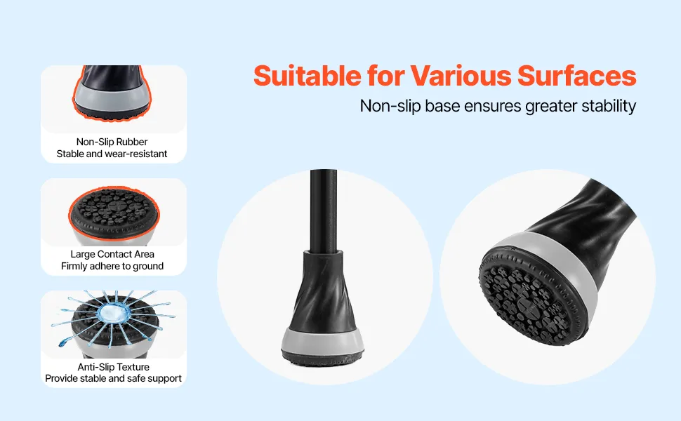 Este bastón para caminar viene con una base hecha de caucho TPR duradero, que ofrece un gran contacto con el suelo, mejor tracción y absorción de impactos para garantizar la estabilidad y la comodidad.