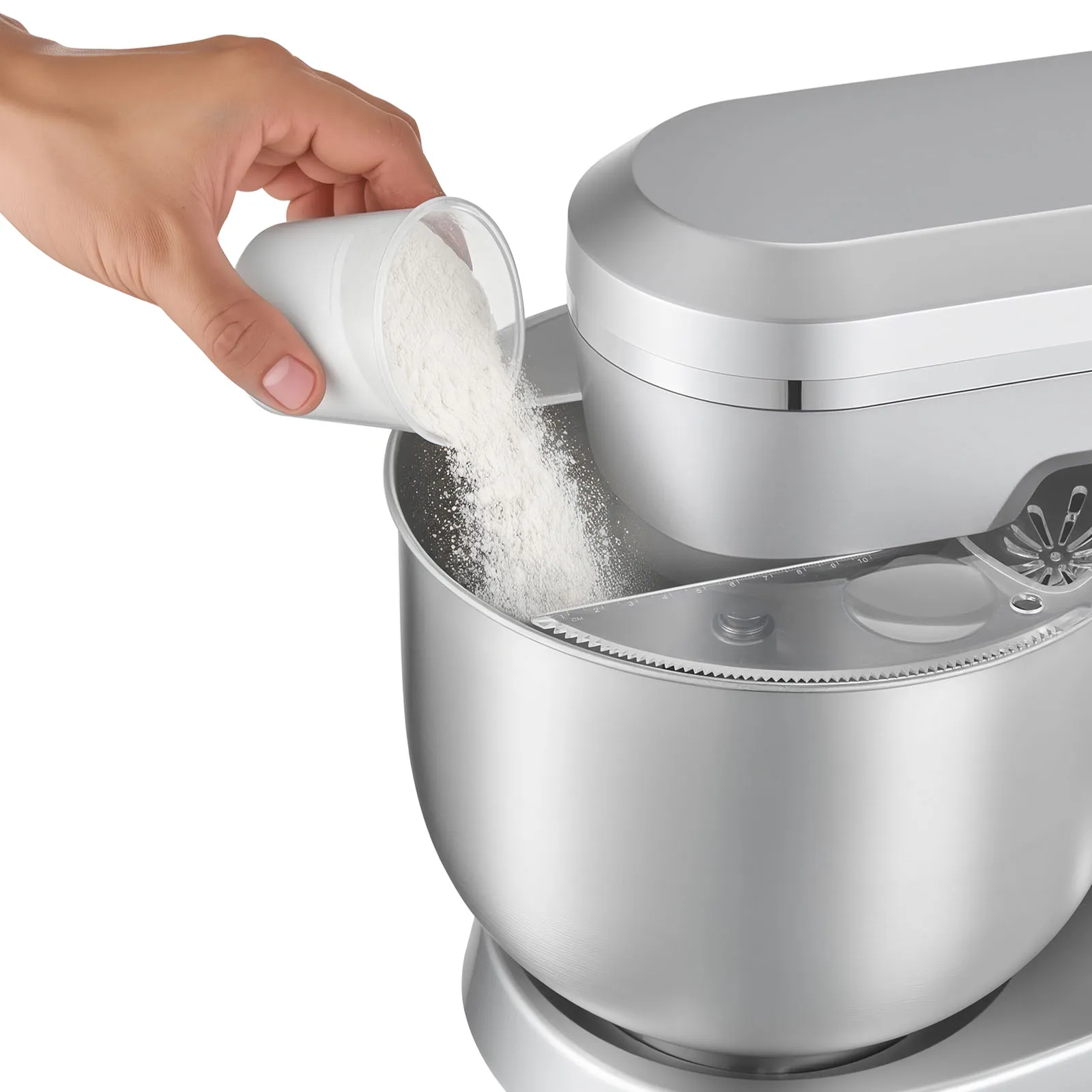Control de 10 velocidades: Nuestra batidora eléctrica cuenta con un potente motor de 1500 W para una mezcla rápida y uniforme. Diez velocidades ajustables garantizan resultados óptimos: de la 1 a la 6 para masas, de la 1 a la 7 para rellenos y de la 8 a la 10 para montar nata. Detenga la máquina antes de cambiar la velocidad