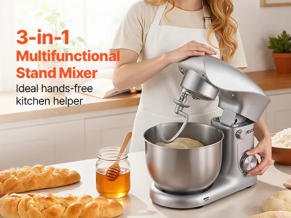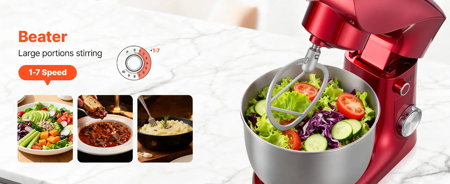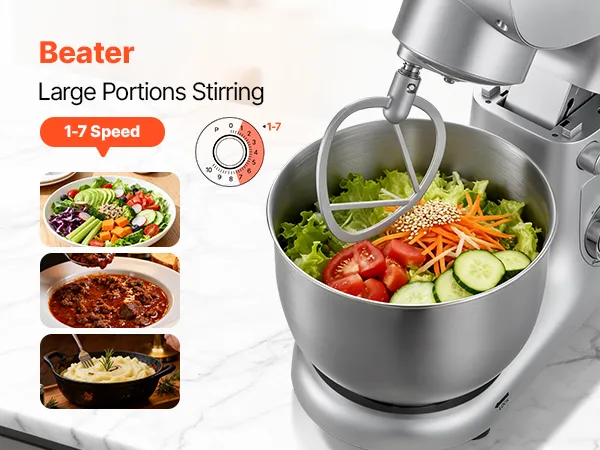 Uso versátil en la cocina: Desde cocinas domésticas hasta restaurantes, panaderías, hoteles y pizzerías, nuestra batidora eléctrica funciona de maravilla en una gran variedad de entornos. Es la primera opción para mezclar crema, verduras y masa