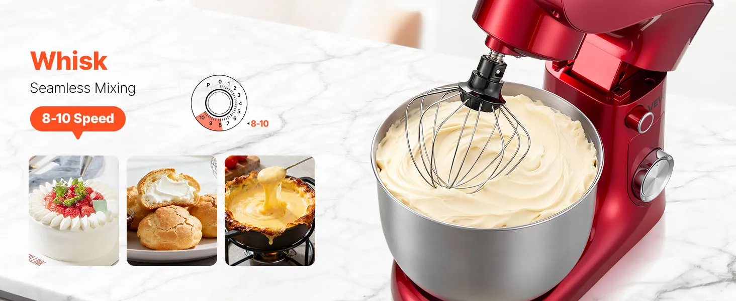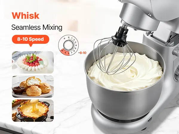 Control de 10 velocidades y función de pulso: Nuestra batidora eléctrica cuenta con un potente motor de 1500 vatios para una mezcla rápida y uniforme. Diez velocidades ajustables garantizan resultados óptimos: 1-6 para masas, 1-7 para rellenos y 8-10 para montar nata. Detenga la máquina antes de cambiar la velocidad