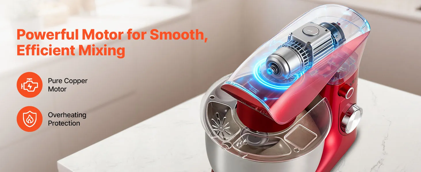 Tazón de gran capacidad: Nuestra batidora de pie cuenta con un espacioso tazón de acero inoxidable de 4,2 L, que le permite mezclar grandes cantidades de masa, hornear galletas con chispas de chocolate, hacer pan fresco o incluso preparar puré de papas para su próxima gran comida