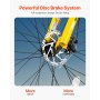 Excelente sistema de frenado: Esta bicicleta de montaña está equipada con frenos de disco delanteros y traseros para una respuesta rápida, lo que ofrece un control preciso y seguridad incluso en descensos y en condiciones húmedas. Los neumáticos de primera calidad combinados con llantas de aleación de doble pared extra anchas equilibran la resistencia y el rendimiento liviano