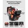 VEVOR Mochila para Herramientas, Organizador de Herramientas 380 x 230 x 546 mm con Base Moldeada, 56 Bolsillo ideal para Electricistas, Técnicos de Construcción, Industriales, Reparadores