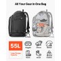 VEVOR Mochila de Viaje para Botas de Esquí, 55 L, para Hombre y Mujer, Impermeable, Exterior e Inferior, Oxford 1680D Resistente, para Snowboard, Casco, Gafas y Guantes, Negro, 410 x 270 x 500 mm
