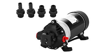 La bomba de diafragma está especialmente diseñada para el sistema de presurización. Bomba autocebante automática con un flujo máximo de 17 L / min, PSI de entrada ajustada en Max 40 PSI (2,76 Bar).