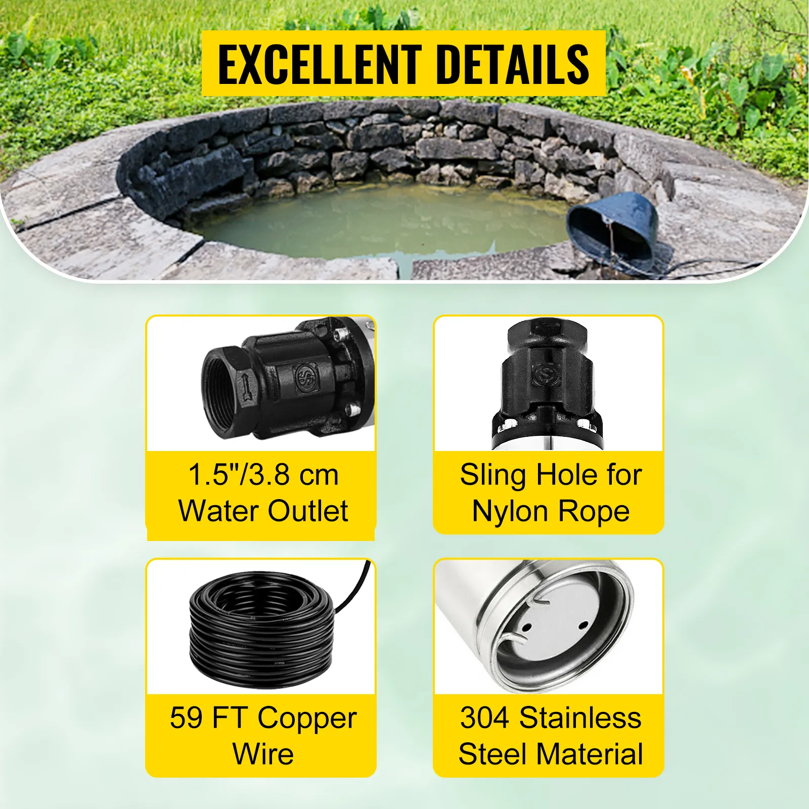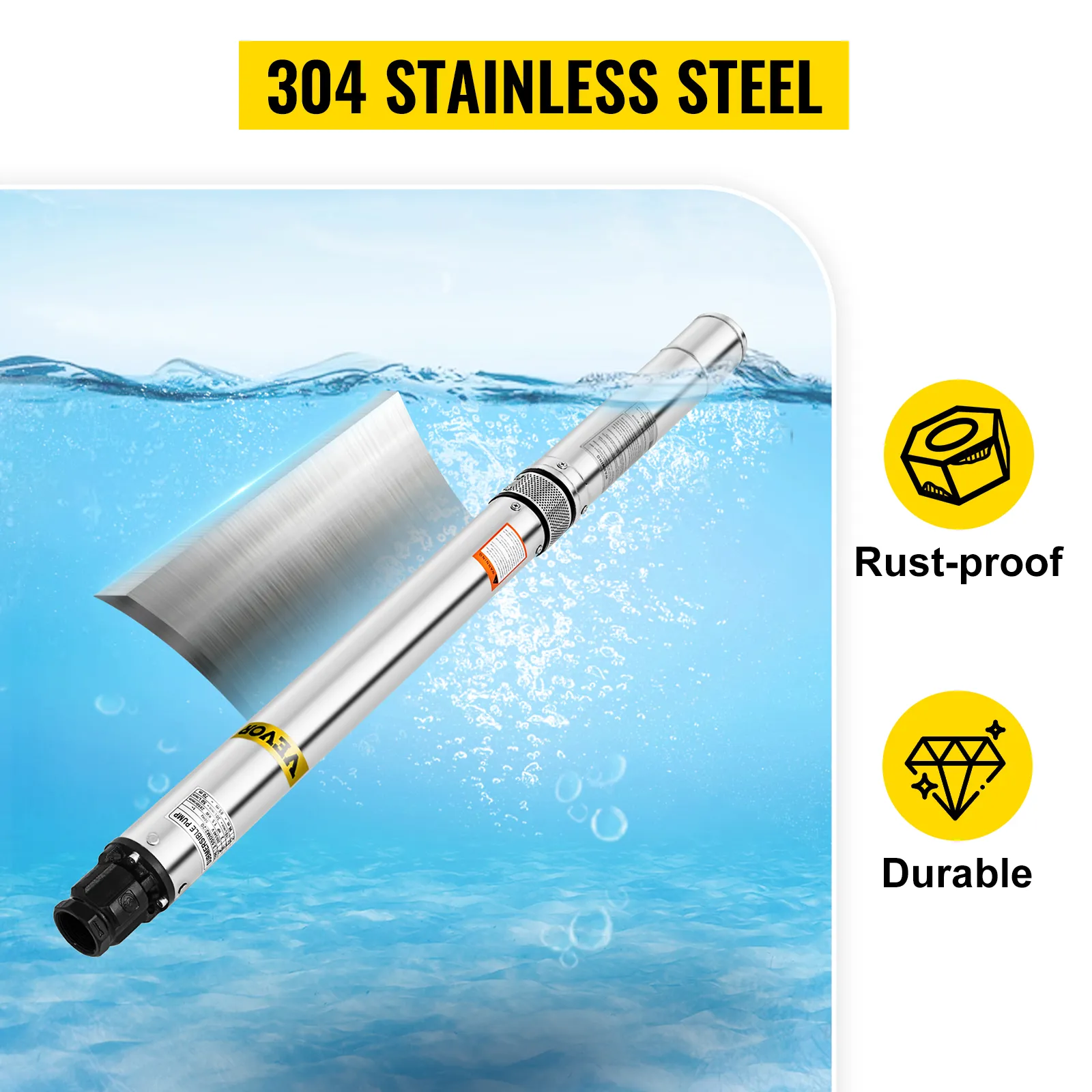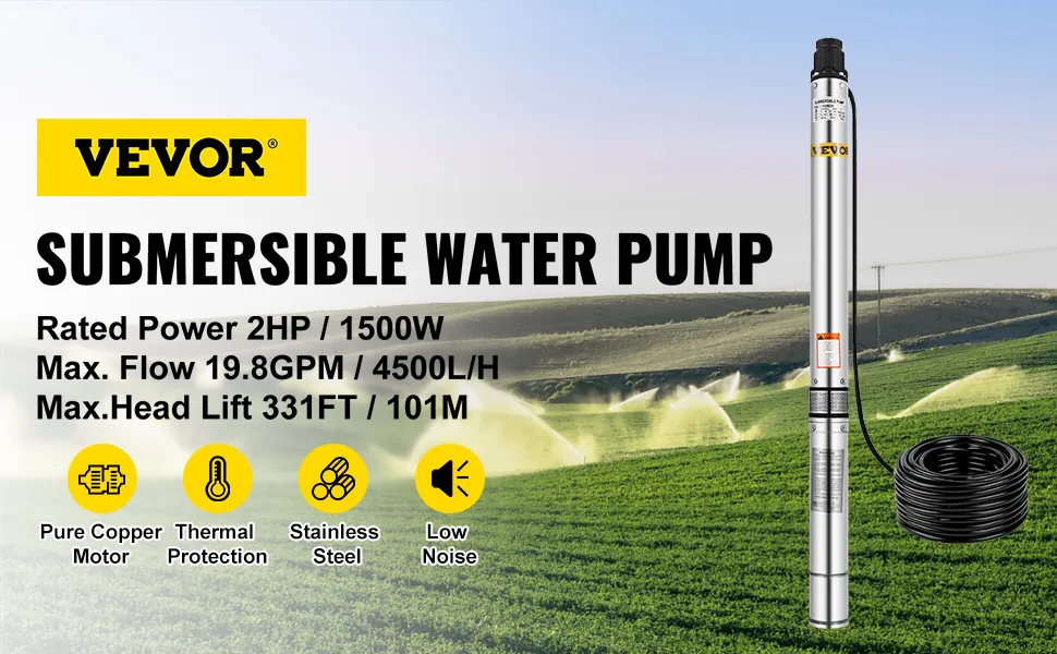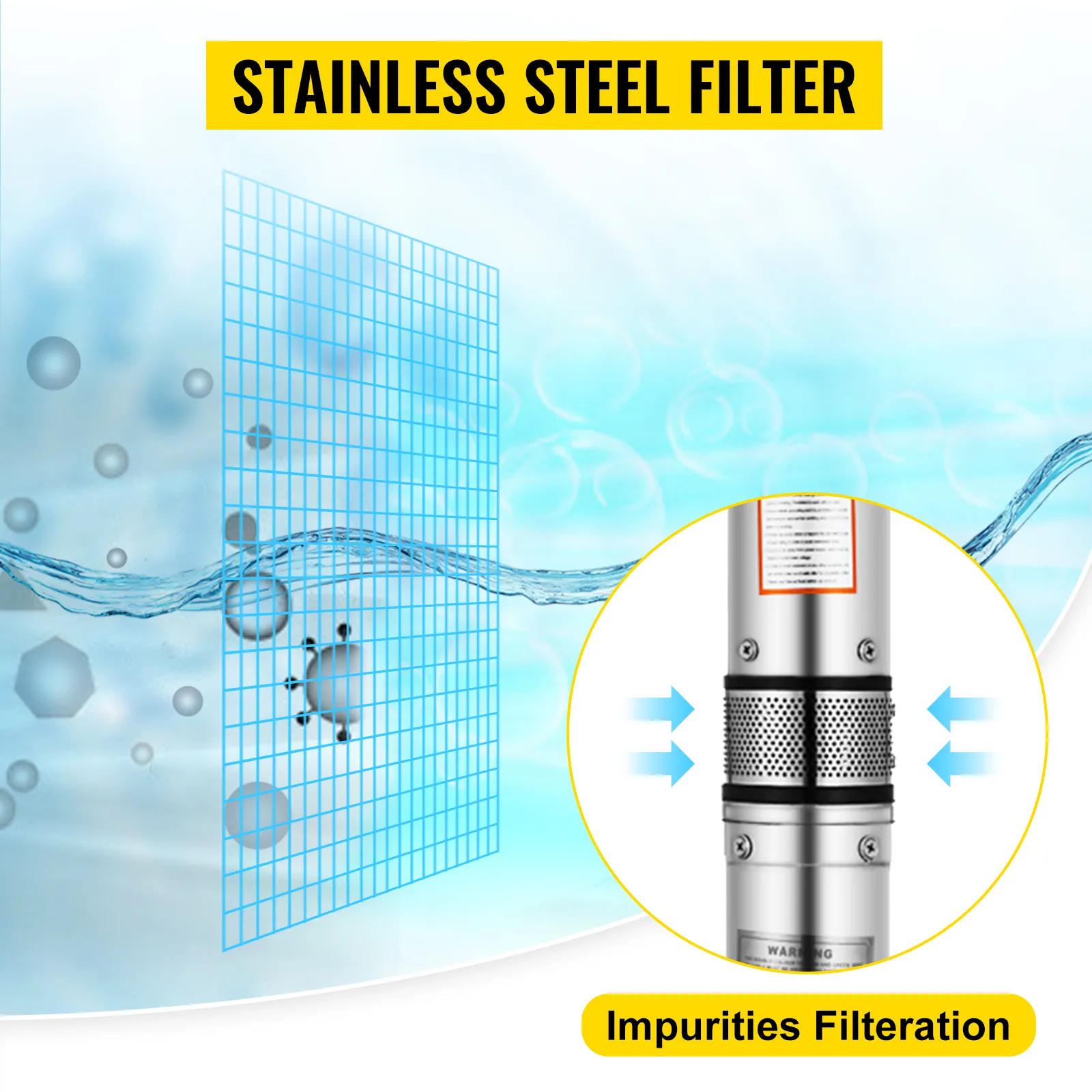 - Esta bomba sumergible, fabricada en acero inoxidable 304, es una bomba de pozo duradera que le servirá durante un par de años. Además, esta bomba para pozos profundos le proporciona un caudal avanzado, produciendo un flujo constante hasta bastante profundidad bajo la superficie. Con esta bomba de pozo profundo, podrá obtener agua de forma rápida y cómoda incluso desde grandes profundidades.