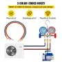 This professional refrigerant tool kit contains all the necessary tools you need, including a rotary vane vacuum pump, a pressure gauge set, three hoses, adjustable quick couplings, and a sturdy metal case.