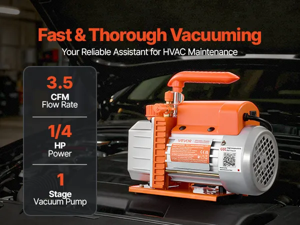 Succión de alto rendimiento: Esta bomba de vacío rotativa monobloque de paletas está equipada con un robusto motor de 1/4 HP y 180 W, que proporciona un caudal de 3,5 CFM (99 L/min) y una presión de vacío máxima de 5 Pa. Ideal para el mantenimiento de sistemas de climatización, garantiza una limpieza profunda y resultados fiables en cada uso