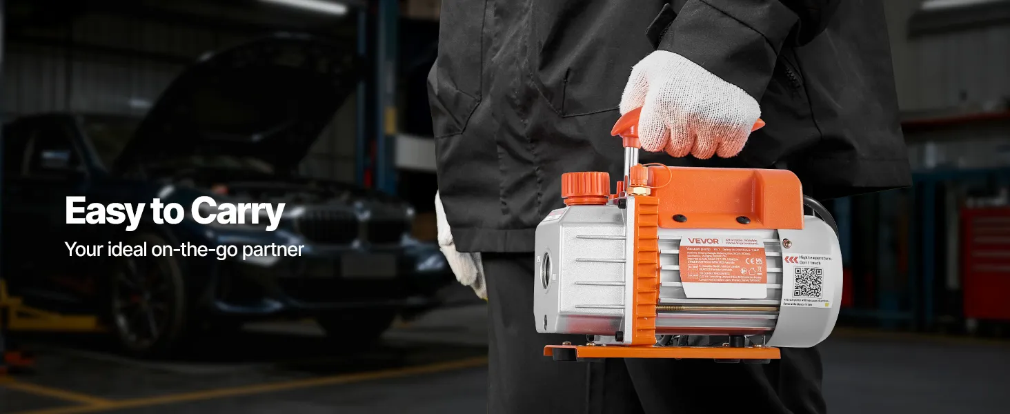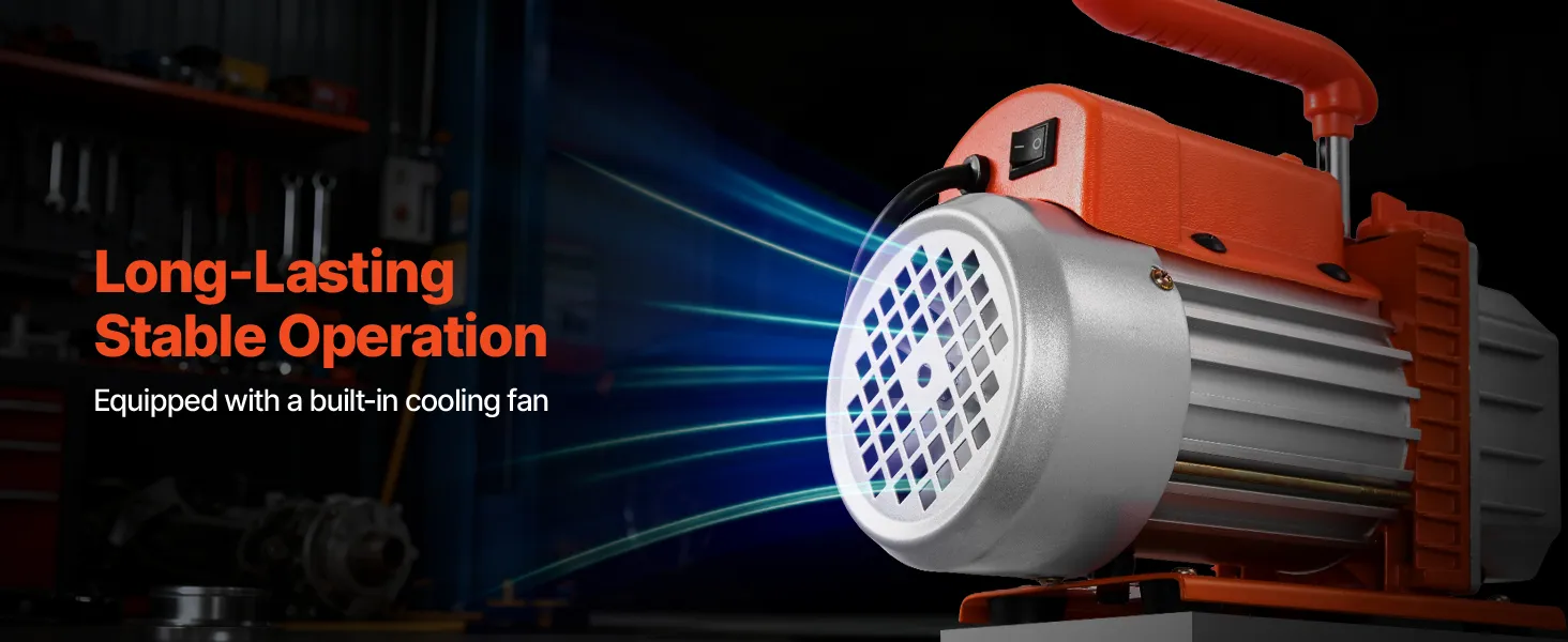 Funcionamiento estable y fiable: Equipada con un motor de 4 polos de alto par, esta bomba de vacío para sistemas de calefacción, ventilación y aire acondicionado (HVAC) funciona de forma eficiente durante largos periodos. Su carcasa de hierro fundido y aluminio fundido a presión, con ventilador de refrigeración integrado, evita el sobrecalentamiento y garantiza un rendimiento estable