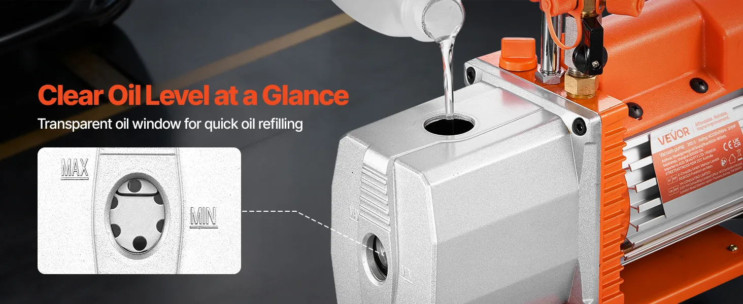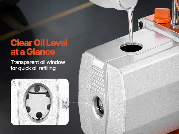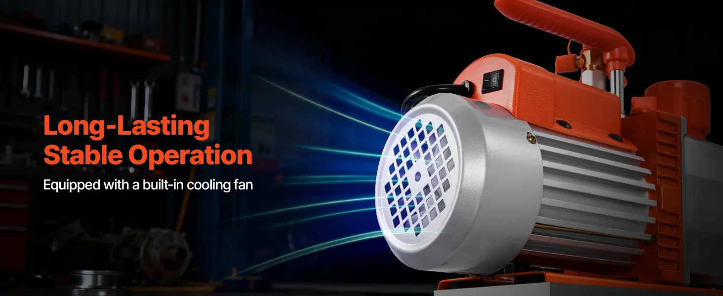 Rendimiento de vacío excepcional: Equipada con un motor de 4 polos de alto par, esta bomba monobloque de 7 CFM y 198 L/min alcanza un alto vacío de hasta 0,3 Pa. Su capacidad de aceite integrada de 250 ml garantiza un funcionamiento estable y duradero, así como un fácil mantenimiento