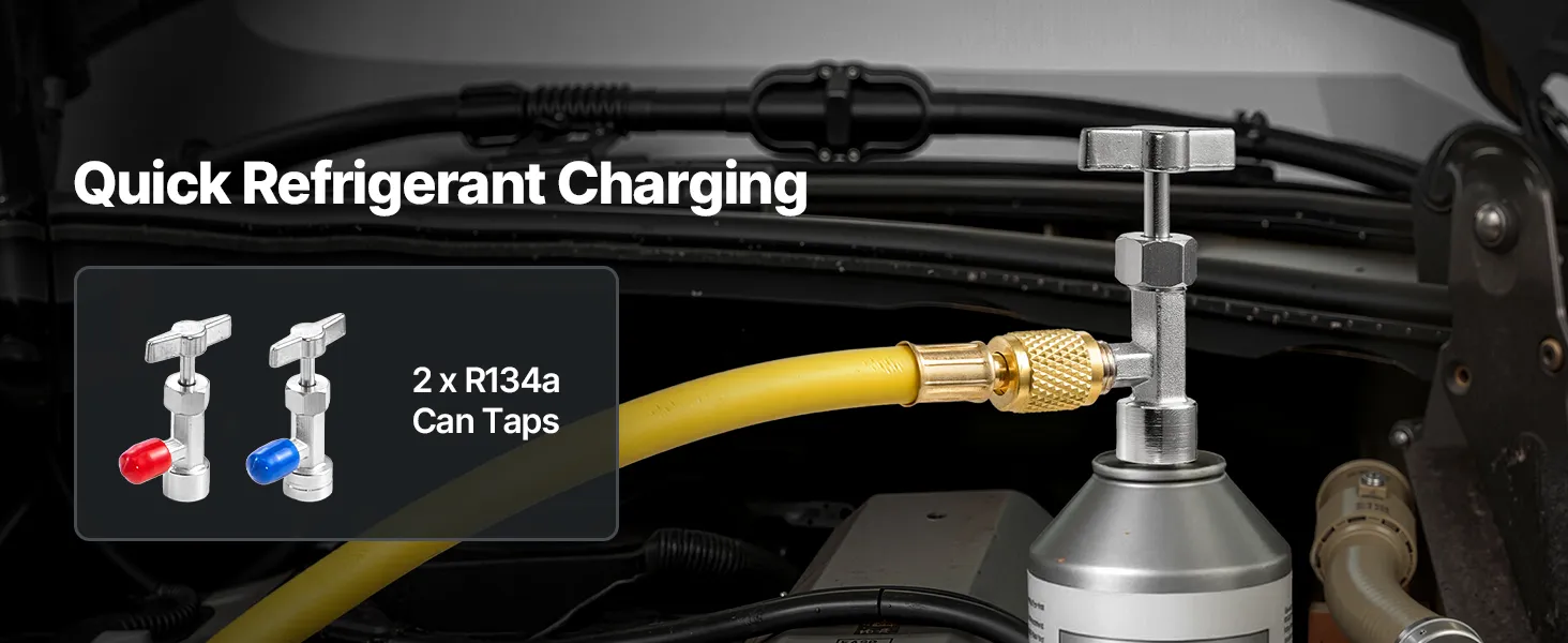 P: ¿Se puede utilizar para reparar el aire acondicionado del coche? R: Sí. Es compatible con sistemas de aire acondicionado automotriz R134a. Sin embargo, asegúrese de apagar el motor del vehículo durante el aspirado. No lo use con sistemas que contengan refrigerantes inflamables como el R1234yf.