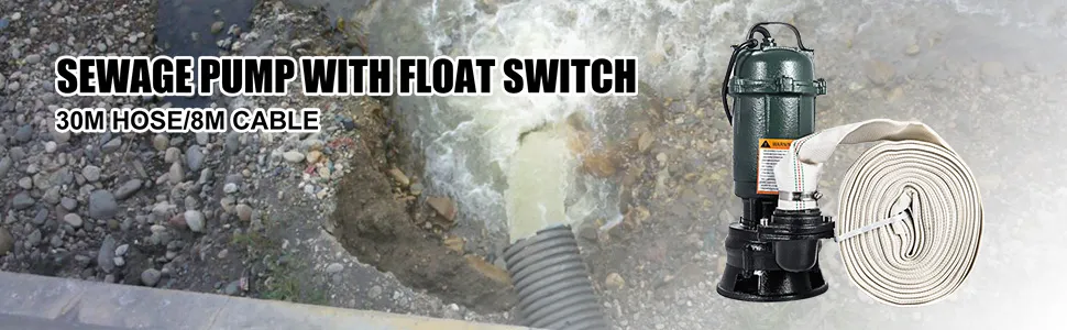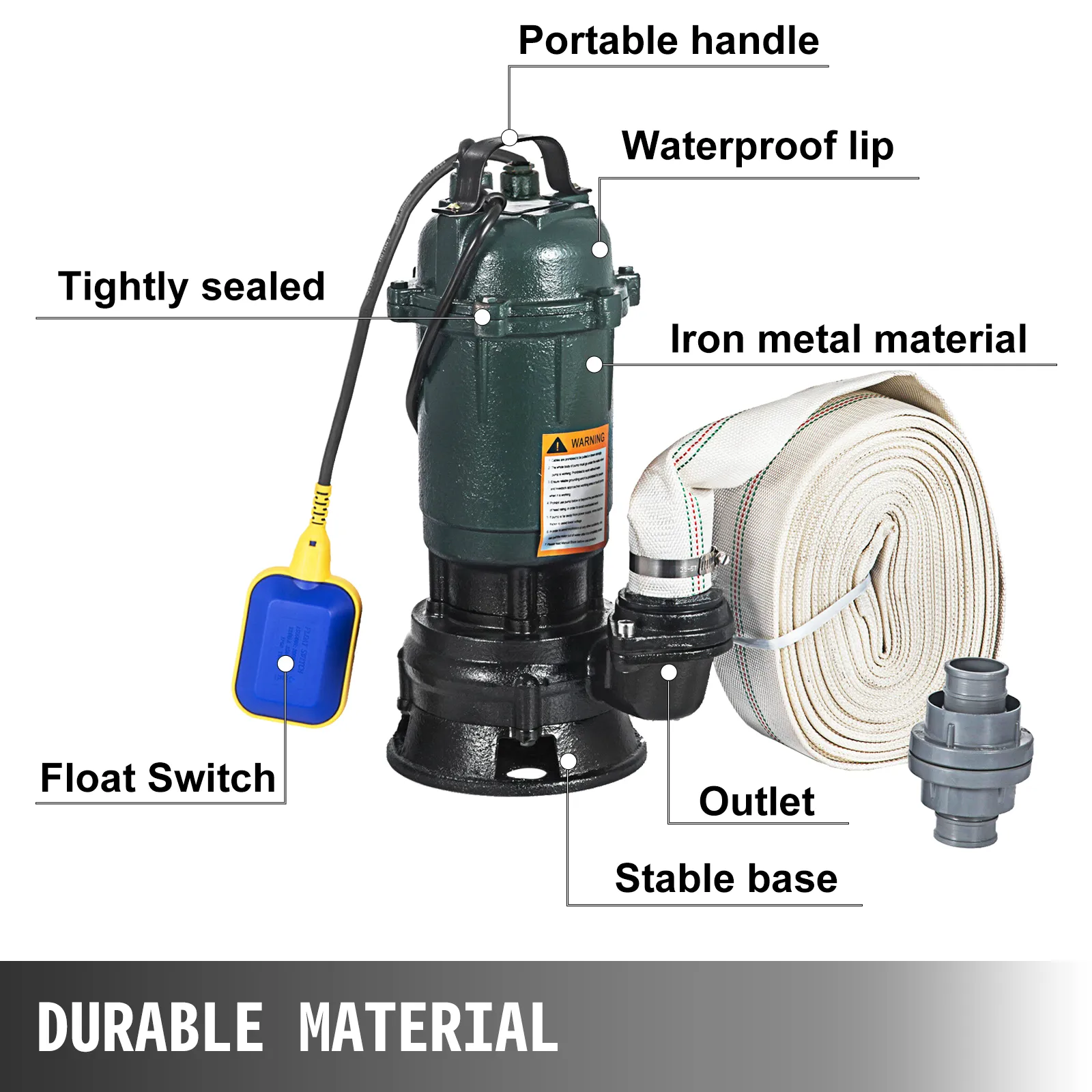 La bomba sumergible para aguas residuales incluye una manguera de 98 pies / 30 m con el anillo de sellado "0" que es perfecta para el drenaje de agua diario u otro drenaje de emergencia.