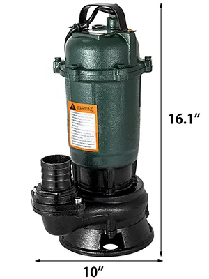 La bomba sumergible para aguas residuales cuenta con salidas grandes, un impulsor de alta calidad y una base más alta que son adecuadas para las aguas residuales de desechos grandes, no son fáciles de bloquear y funcionan más suavemente con menos ruido y pérdidas. El motor de cobre con protección térmica puede prevenir el sobrecalentamiento para una vida más larga.