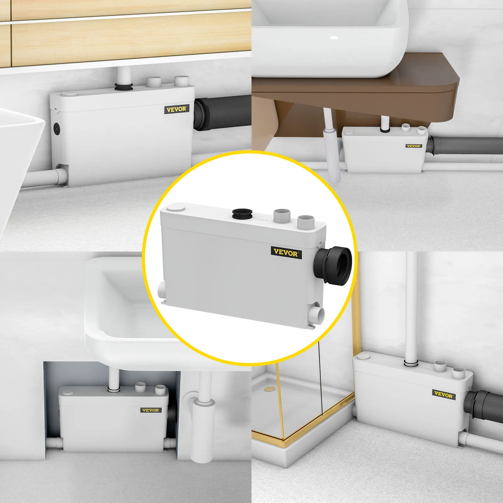 VEVOR Triturador Sanitario 400 W Trituradora de Agua Residual 100 L/min 220 V Inodoro Triturador 18,5x5x12 5 Entradas (1 Cara) en Sótanos Lofts Cocinas Baños Lavabos Duchas para Eliminación de Agua