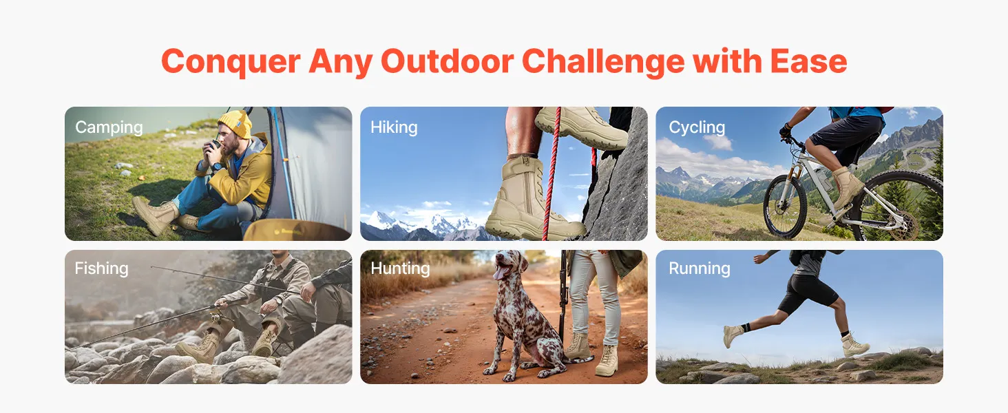 Adecuadas para acampar, hacer senderismo, andar en bicicleta o cazar, estas botas pueden satisfacer una amplia gama de necesidades al aire libre, brindando soporte y protección sólidos para cada exploración y desafío al aire libre.
