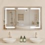 VEVOR Lighted Medicine Cabinet with Mirror, 100 x 60 cm Wall-Mounted, 3 Color Dimmable LED Bathroom Medicine Cabinet with Tempered Glass Mirror, Memory Function/2 Adjustable Shelves/ Outlets & USBs