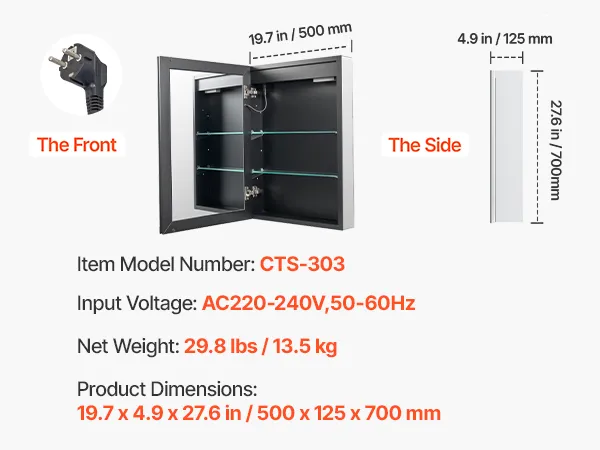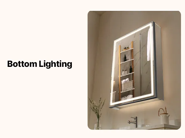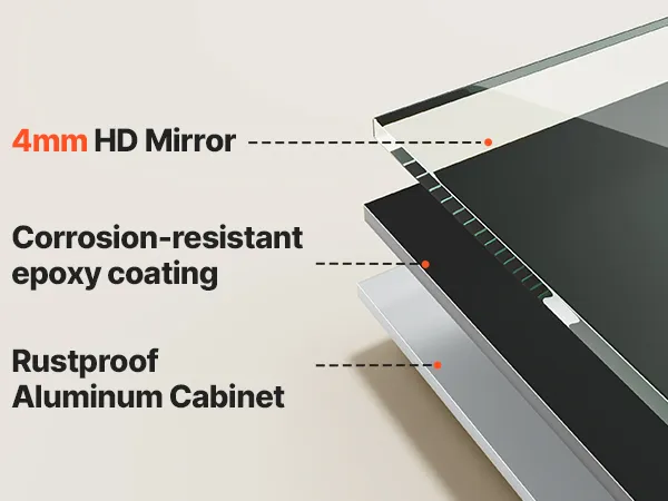 Antivaho de un toque: Con una función antivaho de un toque, el gabinete de espejo LED calienta rápidamente el centro del espejo para eliminar el empañamiento, lo que garantiza un reflejo claro incluso en condiciones de baño húmedo
