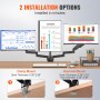 El soporte ofrece opciones de montaje con abrazadera en C y ojal. Esta flexibilidad garantiza que se adapte a la mayoría de los escritorios. La abrazadera puede adaptarse a grosores de escritorio de 0,39 a 2,95 pulgadas. Admite hasta 3,15 pulgadas de altura. Esta flexibilidad lo hace adecuado para varias configuraciones de escritorio. Los soportes de agarre y ojal son fáciles de colocar. Proporcionan una sujeción segura, lo que garantiza que sus monitores permanezcan en su lugar. El proceso de instalación es rápido y sin complicaciones. No se necesita ayuda profesional. Esta comodidad le ahorra tiempo y esfuerzo. No necesitará ninguna asistencia profesional. El proceso de instalación es sencillo. No es necesaria ninguna ayuda profesional. Esta comodidad le ahorra tiempo y esfuerzo valiosos, ya que el diseño robusto del soporte garantiza que se mantenga estable bajo carga. Disfrute de una configuración estable, ya que no se tambaleará ni se moverá. El soporte para tres monitores VEVOR proporciona una solución confiable para las necesidades de su espacio de trabajo.