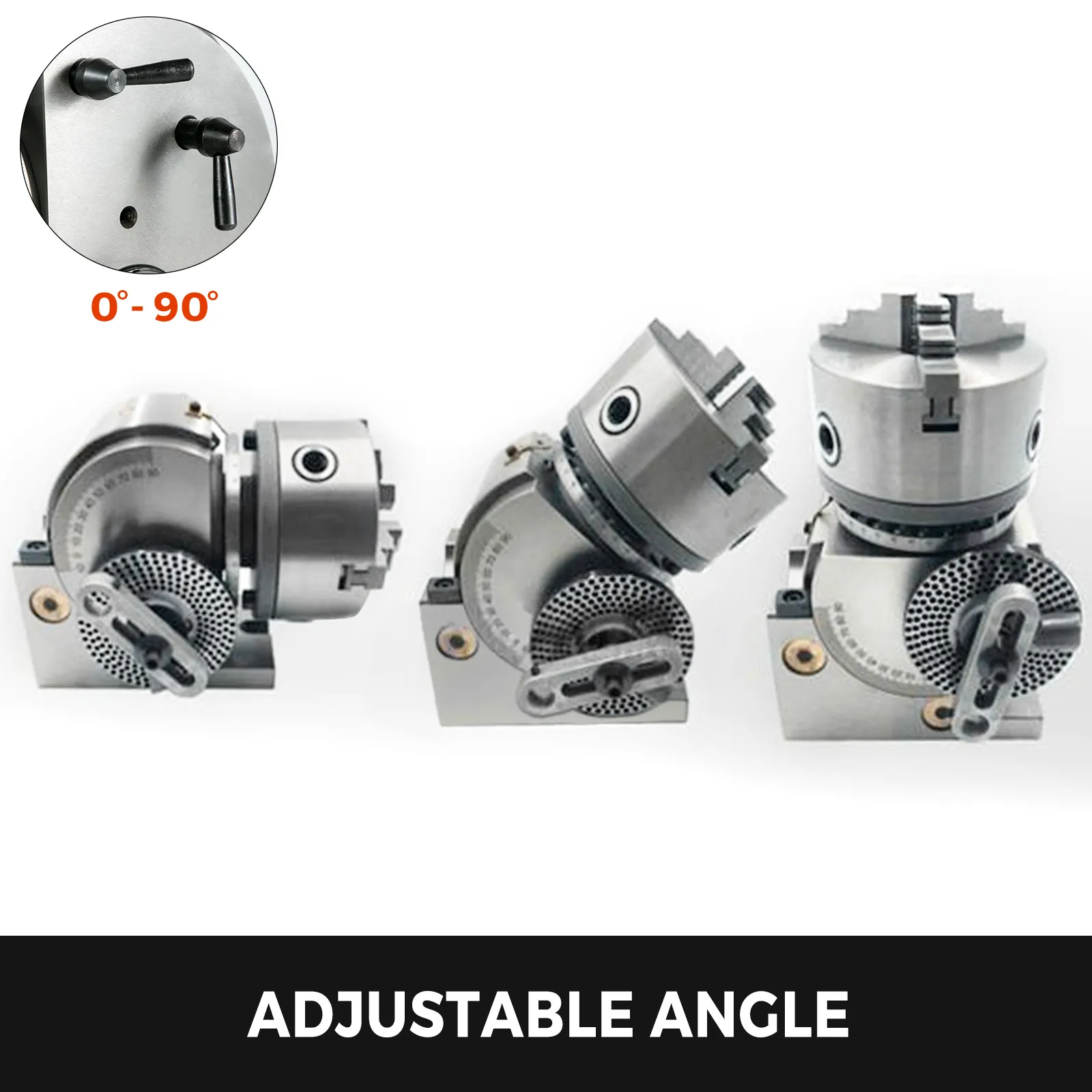 • 【CABEZA DIVISORA AJUSTABLE】 - La cabeza divisoria semiuniversal presenta un mandril de 8 "y 3 mordazas. El cabezal es ajustable desde la posición horizontal a 90 grados hacia arriba. Altura del centro: 8" / 200 mm. Libere 3 mordazas más para un mandril de 8 ".