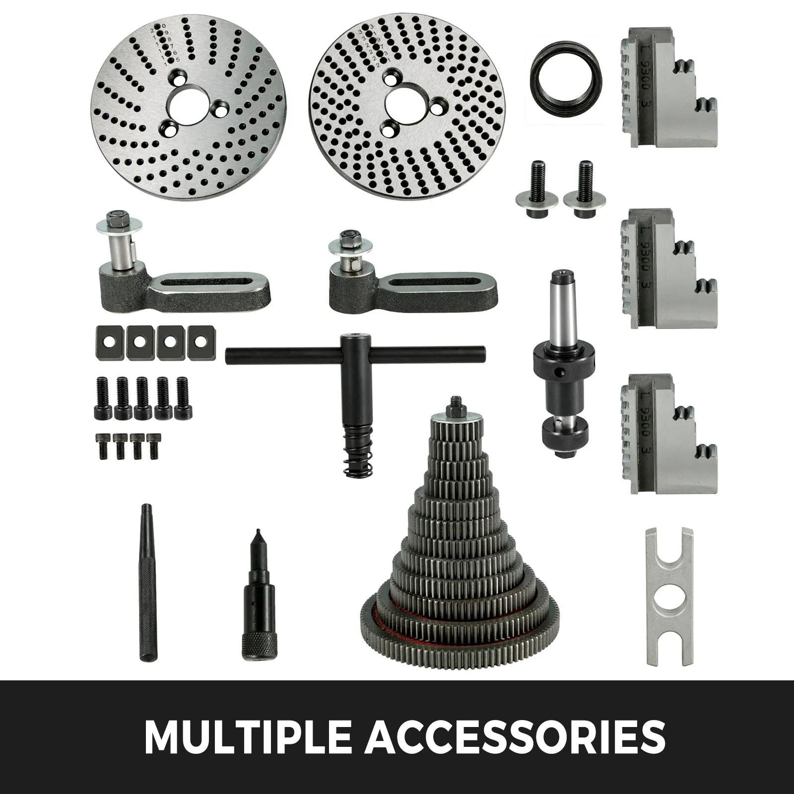 3 placas divisorias para diferentes tamaños con indexación fácil de divisiones de 2 a 50 y la mayoría de los números hasta 380. Y un conjunto de herramientas de operación proporciona ayuda adicional.
