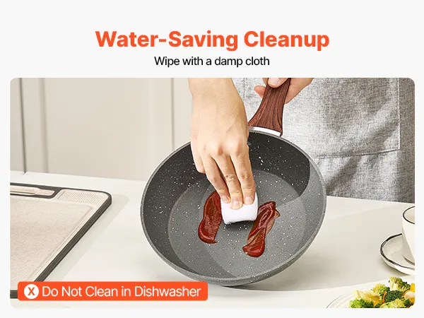 Fácil de mantener: Este juego de sartenes de aluminio se limpia en segundos. Una vez frío, lávelo con agua tibia y jabón y una esponja suave. Nota: No apto para lavavajillas