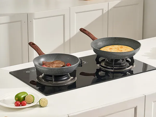 Nuestro juego de sartenes de aluminio incluye sartenes de 250, 280 y 325 mm. Diseñadas para una cocción rápida y uniforme, estas sartenes ayudan a conservar los nutrientes naturales de los ingredientes y a satisfacer una amplia gama de necesidades culinarias diarias.