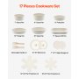 VEVOR Induction Pots and Pans Set (17-piece) with Glass Lids, Non-Stick Cookware with Removable Handle, Induction Cookware for Frying, Seasoning Sauces and Cooking (White)