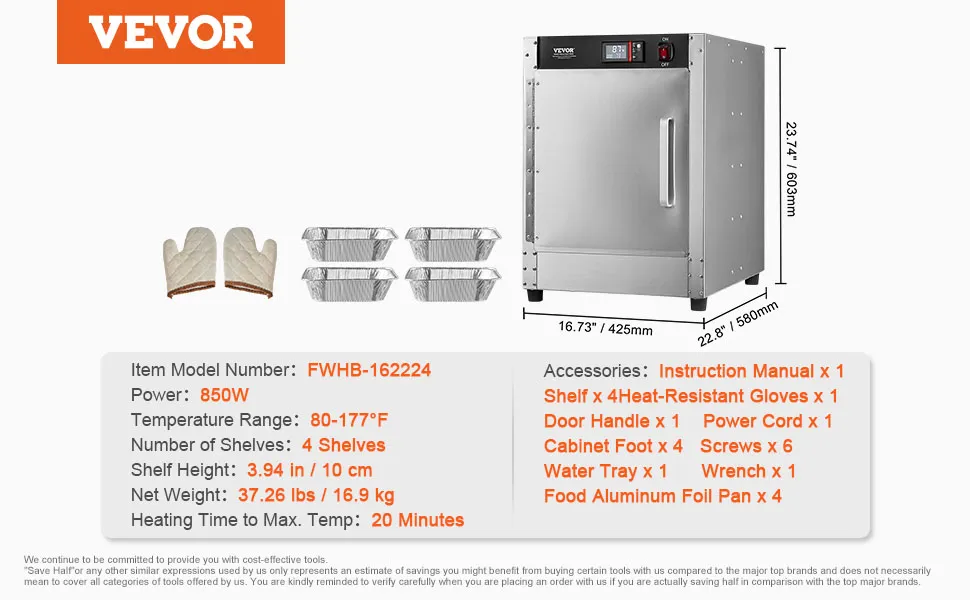 VEVOR Calentador de Alimentos Tipo Caja Caliente, 4 Niveles con Bandeja de Agua, 4 Bandejas, Una Puerta y Estantes Ajustables, Acero Inoxidable, Ideal para Almacenar Pizza, Pollo, 425 x 580 x 603 mm