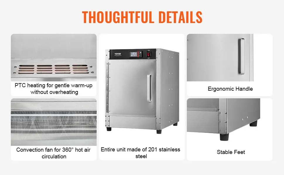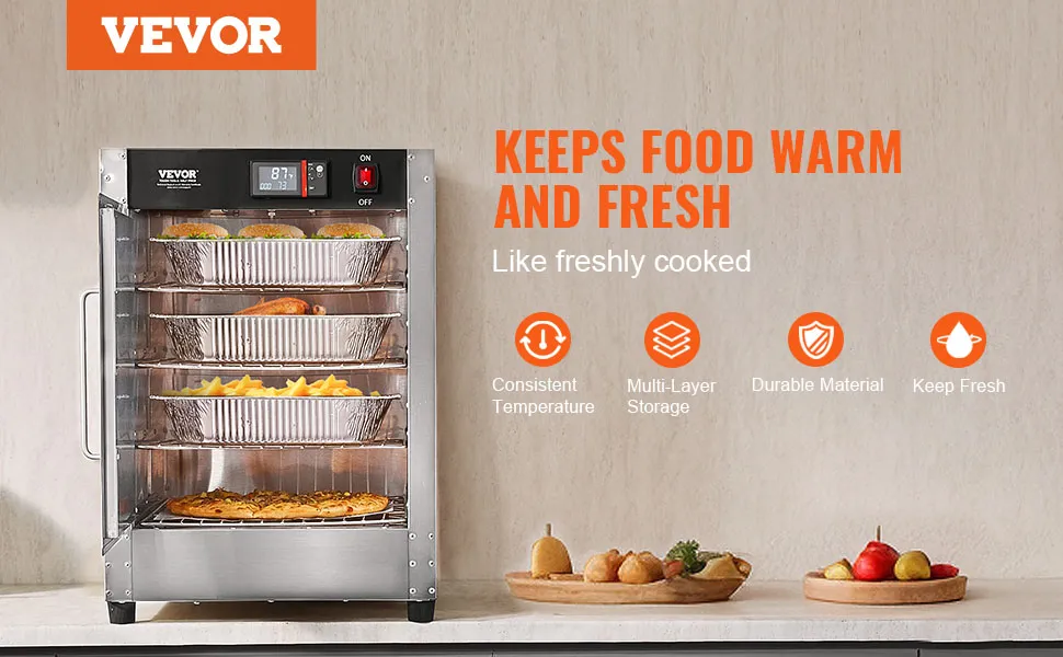 Nuestro gabinete calentador de alimentos proporciona una temperatura constante, manteniendo los platos calientes y frescos sin secarse, haciendo que su deliciosa comida parezca comida recién cocinada.