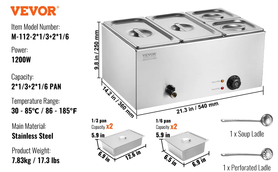 Calentamiento rápido, calidez duradera: este impresionante calentador de alimentos con sartenes viene con un potente tubo de calentamiento de acero inoxidable de 1200 vatios que calienta rápidamente la comida para mantenerla caliente y con un delicioso sabor. Puede ajustar la temperatura de salida según sus preferencias, que van desde 86 a 185 ℉/30 a 85 ℃, gracias al controlador de temperatura.