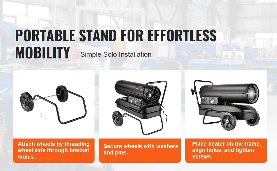 Este calentador de queroseno de bajo consumo calienta rápidamente espacios de trabajo grandes. Con un bajo consumo de energía, calienta rápidamente las áreas para la comodidad de los trabajadores y el funcionamiento flexible de la maquinaria.